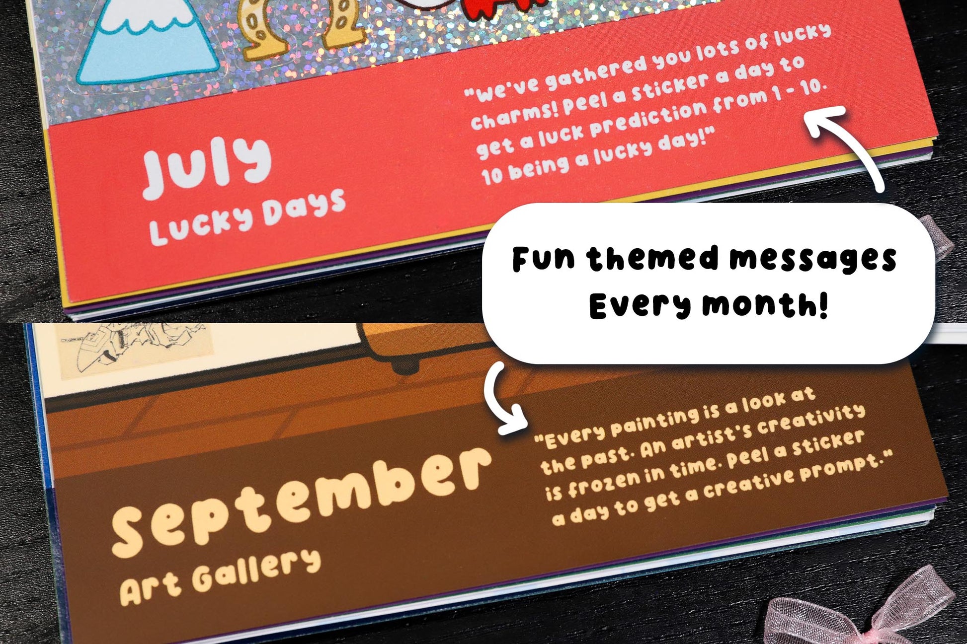 Peel a sticker a day to reveal a message underneath. It could be a motivational message, a bit of inspiration, a prediction of your luck for the day, and more!