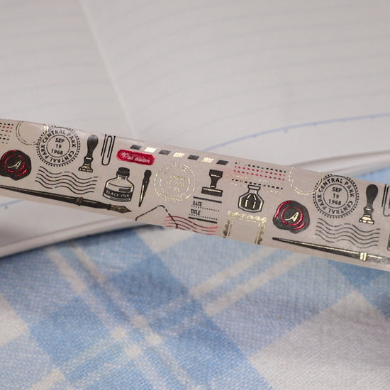 A collection of everything in a stationery lover's dream. Shiny gold and red metallic accents.